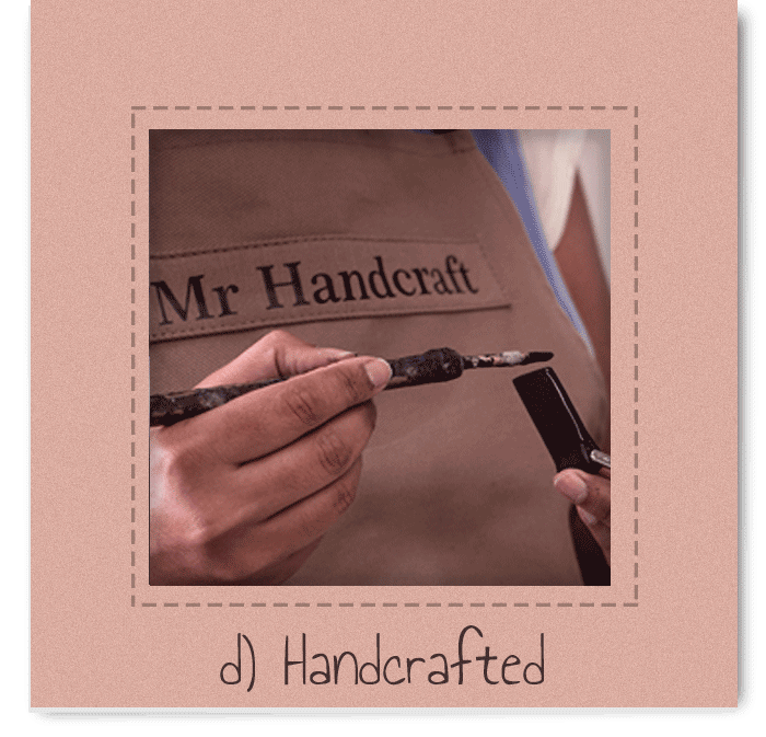 Mr Handcraftは、伝統的な皮革製法と新たな手法を組み合わせ、徹底した品質管理にこだわった、オーダーメイドのレザー製品メーカーです。レザーバッグ、財布、札入れ、小物、トラベル用品を専門にお取り扱いしています。長年の経験に基づいて、お客様に安心して商品の製作や今後のオーダーをして頂けることをお約束します。 ご予算に応じて、常に最高の品質とヨーロッパで有数の製造物流をお選びいただけます。 今すぐあなたの製品を詳細にまとめて、最高の素材とイタリア製、フランス製、スペイン製のレザーを使った、スペイン・アンダルシアのウブリケにある我々の伝統工芸工房にお任せください。