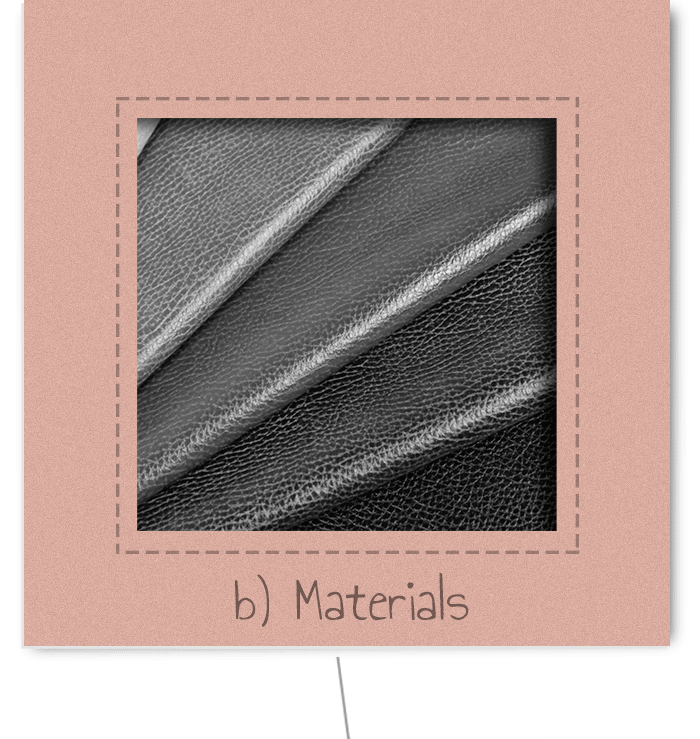 革の硬さ、商品を販売する土地の気候に適した、選び抜かれた上質の金具類、その時期に取り扱いのある色のご相談等、お客様のために より良い素材をご提供します。これらは、この工程でお客様にご自由にお選びいただける我々のサービスの一例となります。